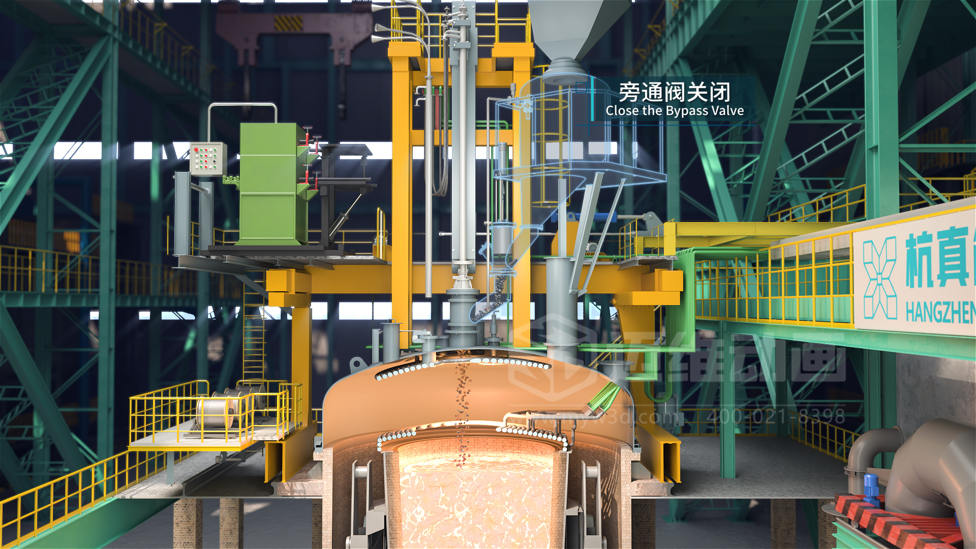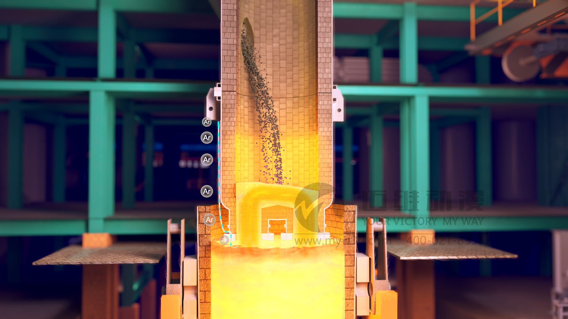 隨著現(xiàn)代工業(yè)和科學(xué)技術(shù)的發(fā)展,各行業(yè)對(duì)鋼材質(zhì)量的要求日益提高,需要鋼材具有更高的純凈度、更精準(zhǔn)的化學(xué)成分控制等。傳統(tǒng)的電弧爐冶煉缺陷多,難以滿足相關(guān)行業(yè)對(duì)高純凈度鋼的要求,因此催生了如 VOD真空精煉爐等多種精煉工藝來提升鋼水質(zhì)量。VOD真空精煉爐是目前應(yīng)用較廣的一種爐外精煉設(shè)備,在國(guó)內(nèi)外鑄鋼生產(chǎn)線中都有較多應(yīng)用,可用于生產(chǎn)不銹鋼鑄件、軸承鋼、合金結(jié)構(gòu)鋼、彈簧鋼、優(yōu)質(zhì)碳素鋼及超低碳不銹鋼等多種鋼種。生產(chǎn)線三維動(dòng)畫作為一種高效的冶金生產(chǎn)工藝流程宣傳展示工具,可以通過3D技術(shù),模擬還原展示從原料進(jìn)入到成品鋼產(chǎn)出的整個(gè)過程,包括真空脫氣、吹氧脫碳、吹氬攪拌、加料及合金化等各個(gè)步驟,同時(shí)還能展示設(shè)備的內(nèi)部構(gòu)造、工作原理等以動(dòng)態(tài)的三維畫面形式呈現(xiàn)出來,讓觀眾可以直觀地看到每個(gè)環(huán)節(jié)的運(yùn)作,遠(yuǎn)比傳統(tǒng)的文字、圖片或靜態(tài)圖表更生動(dòng)、形象,便于理解,深受冶金行業(yè)企業(yè)用戶的青睞。
